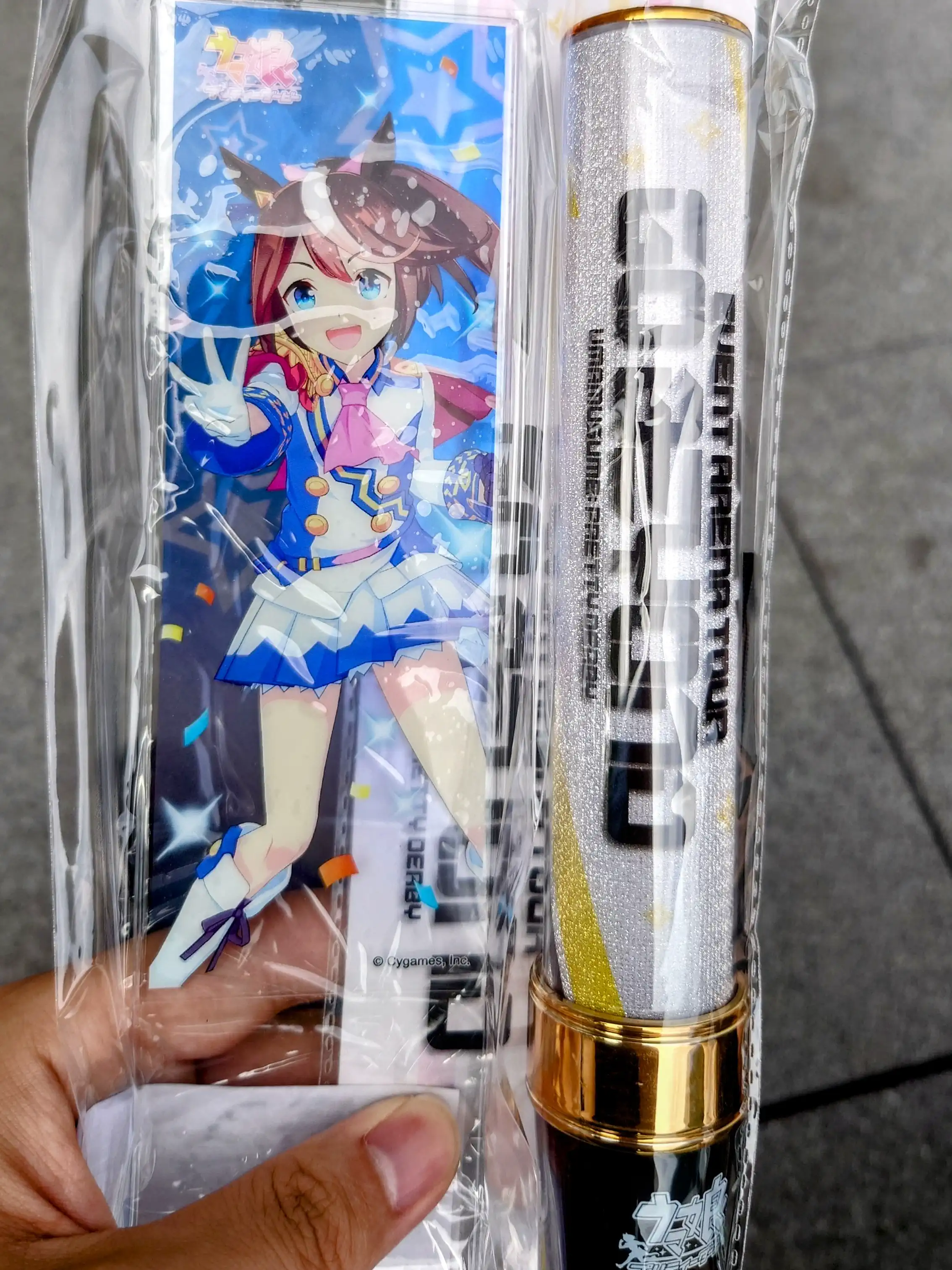 会場付近でtakenokoさん(@takenoko@misskey.nokotaro.com)と合流。挨拶代わりの名刺をいただき、さらには自分の推しのトウカイテイオー色のブレードまでプレゼントしてもらった。