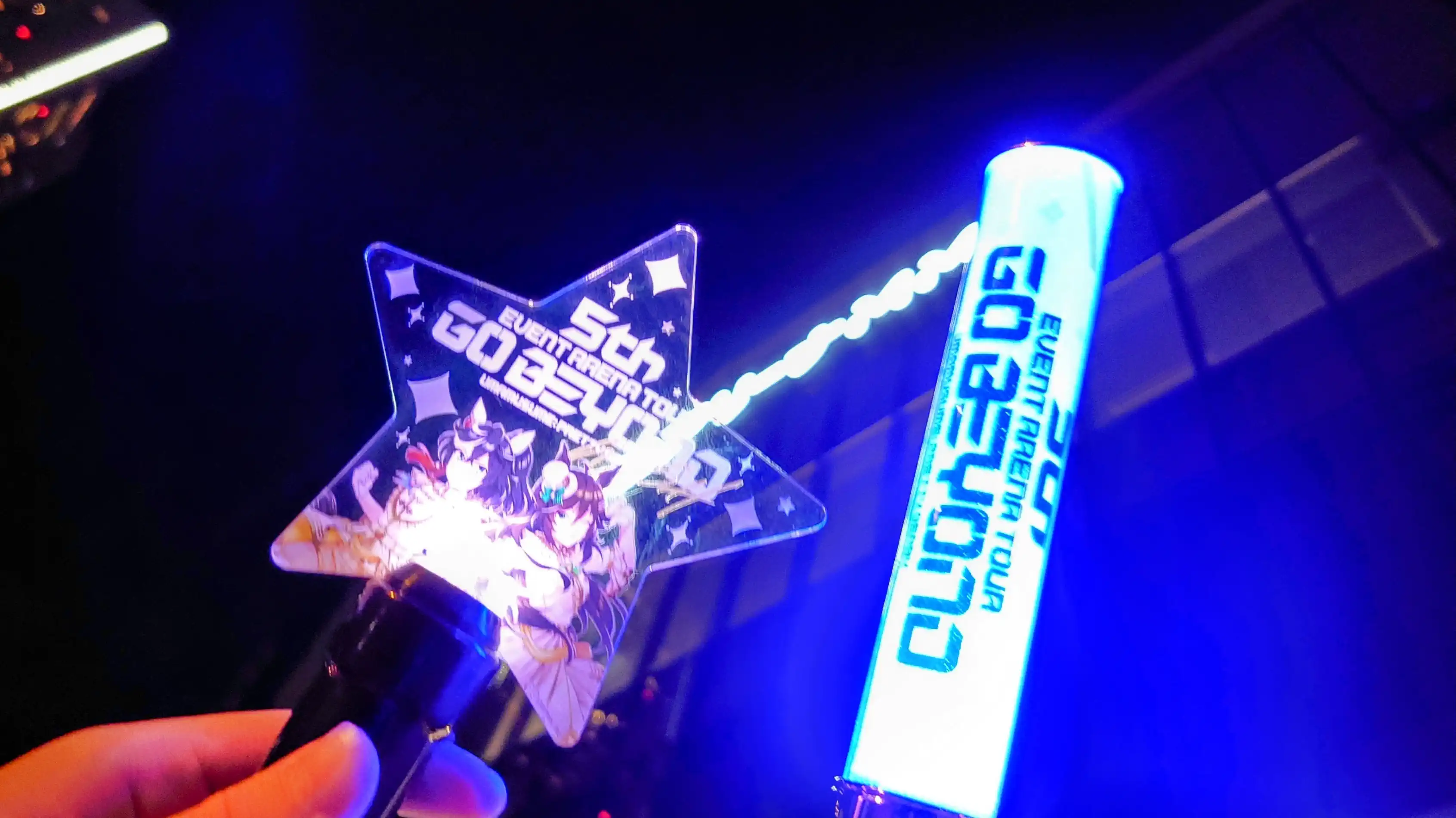 イベントは17時に開始。時間になると開演前最後のBGMで「うまぴょい伝説」が流れ始める。自分はガチ初心者なので始まるんだろうなーと思ってたけど、始まらない。なぜかみんながペンライトを振り始めた。
