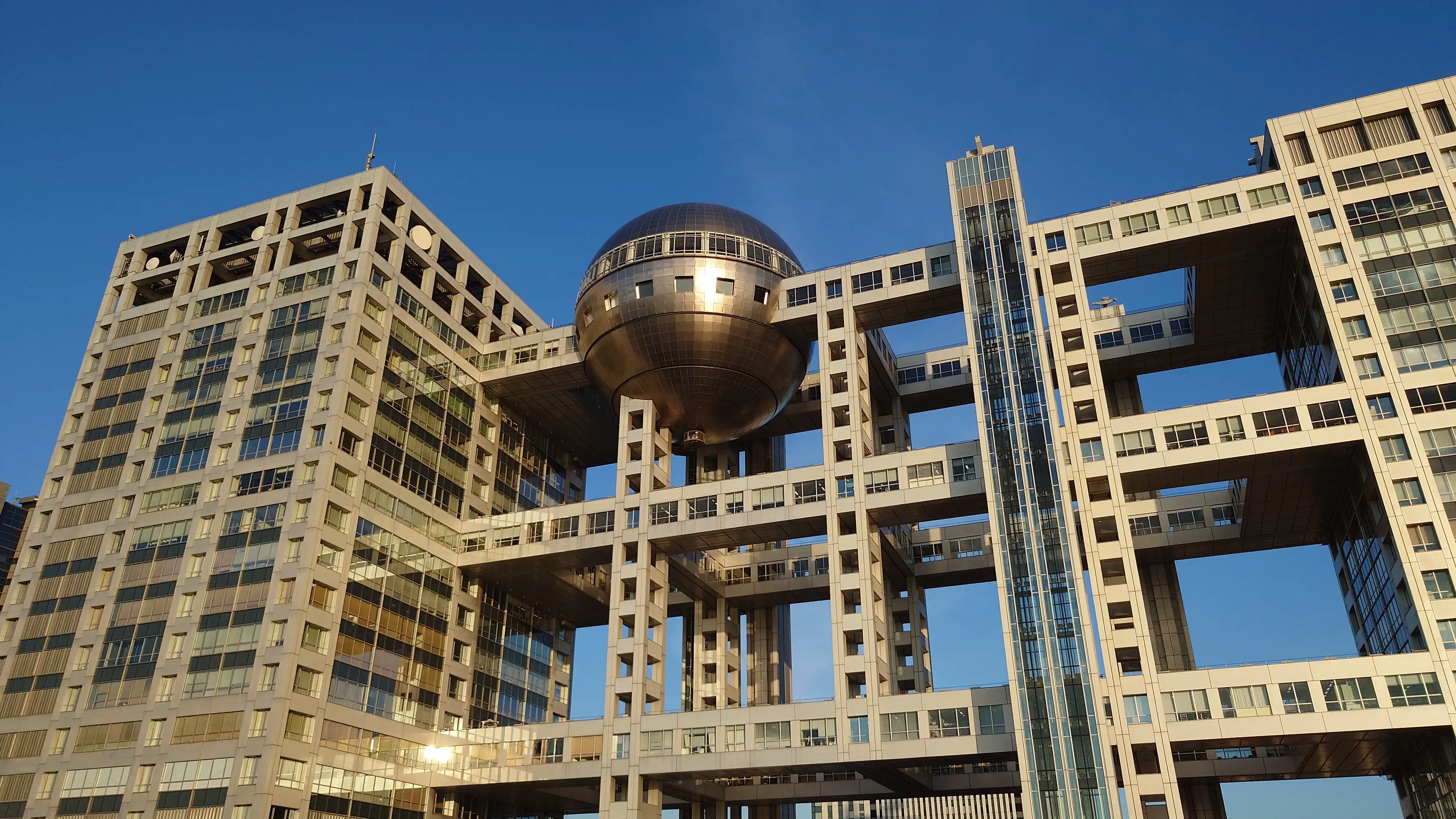 駐車場のすぐ後ろはフジテレビ。球体がシンボルのあの建物を目の前で見ることができた。
