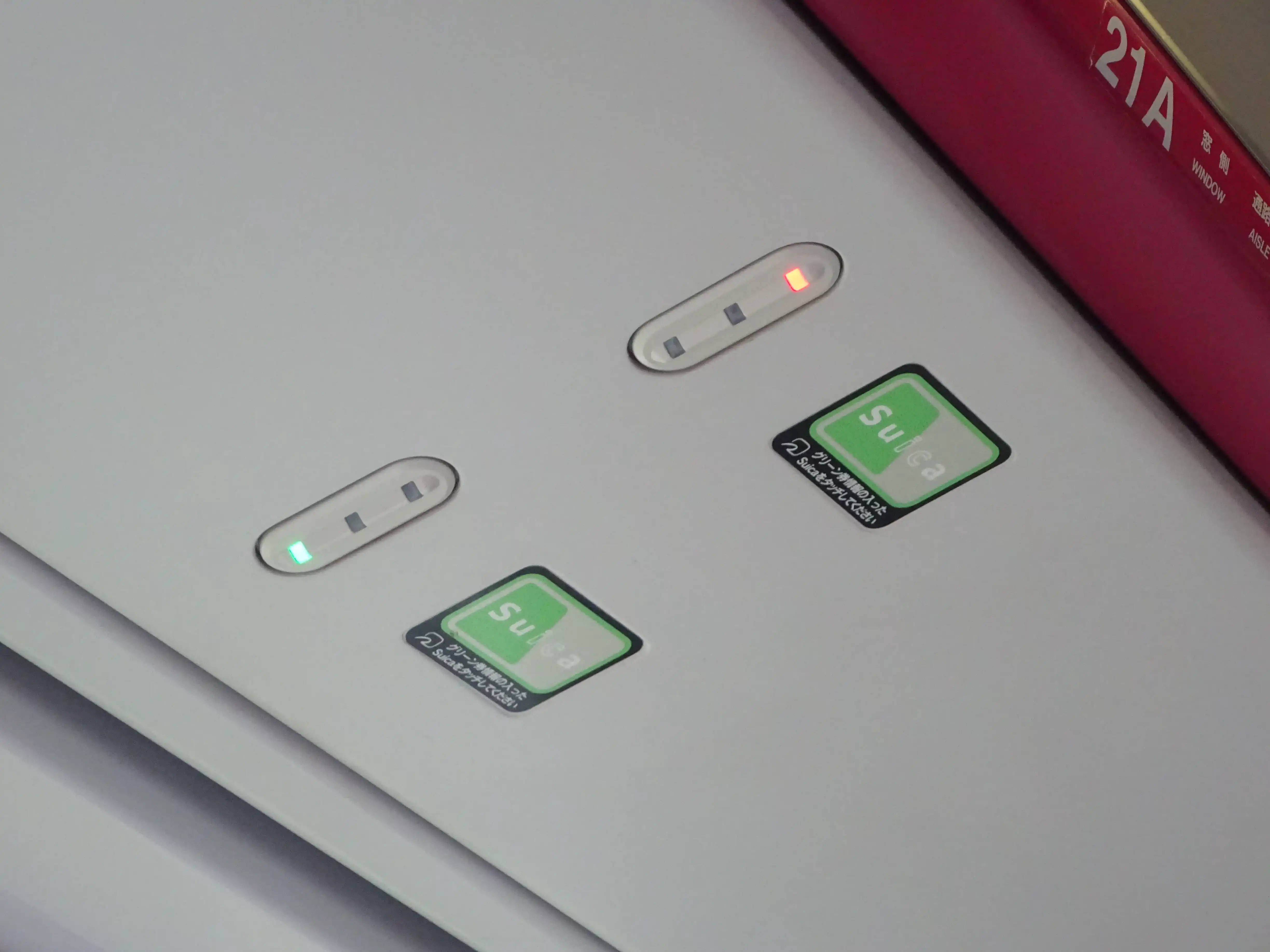 グリーン車はSuicaを使って認証する方式になっている。座る席の真上にあるセンサーにタッチして、ランプを緑にすればグリーン券を持っている証になる。
